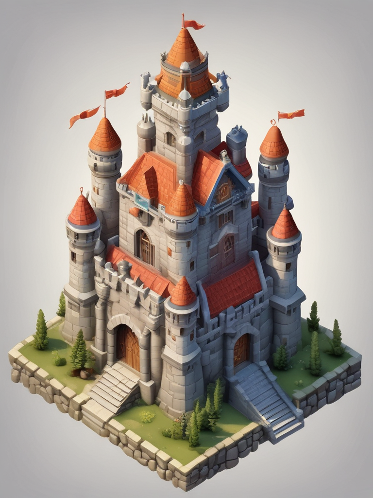 Castle, mobile game asset, isometric, centralised, low details, no background, no shadow